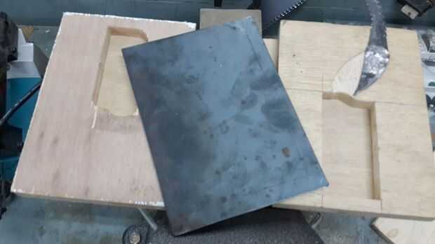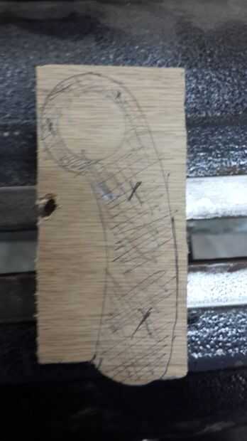 1. Trace la plantilla de la manija y la lámina con la posición correcta a uno de la madera de teca