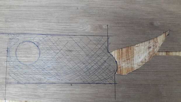 4. Ahora corte el área sombreada, sin dañar la parte sin sombrear. lo hice por taladrar un agujero usando una sierra caladora en el agujero y corte desde el interior.