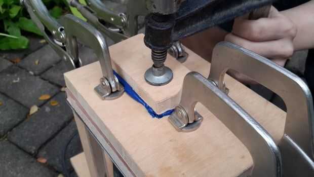 4. Presione hacia abajo, te sugiero utilizar una grapa, para que pueda ajustar fácilmente la presión