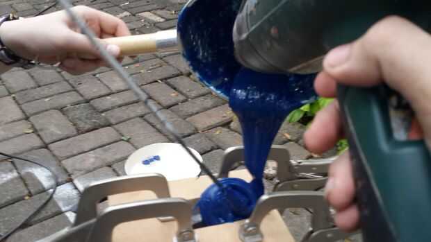 2. luego vierte el plástico fundido en el molde hasta su completa