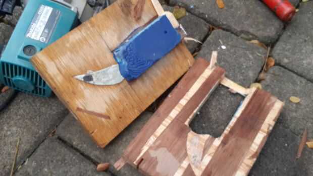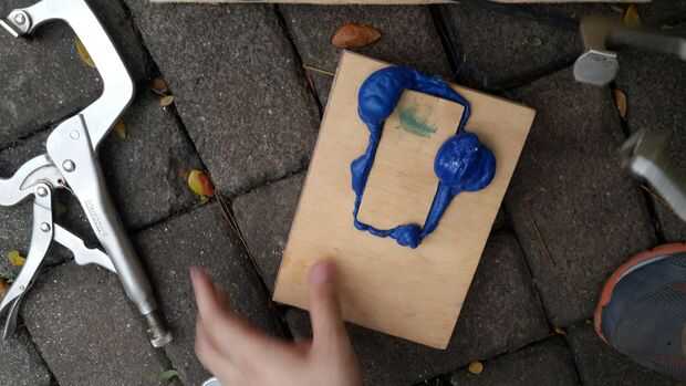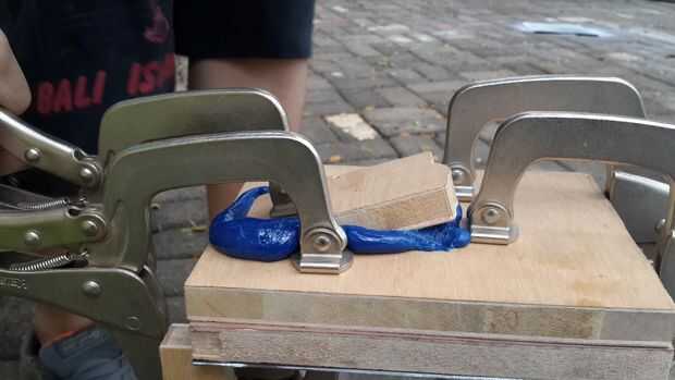 3. Luego tapa el agujero ahora lleno con el rectángulo de madera de teca anterior