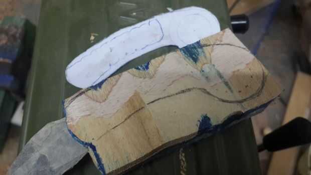 10. ahora otra vez trace la plantilla de mango en el bloque de plástico, según la posición de la hoja