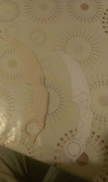 en este tutorial voy a mostrarte cómo hacer este karambit ves en la imagen aquí arriba.Paso 1: Obtener una plantilla e imprimirlaPaso 2: corte Corte las piezas de la plantilla y pegamento a la madera y cortarlo.Paso 3: Pegar y partes de arenaPuede ut