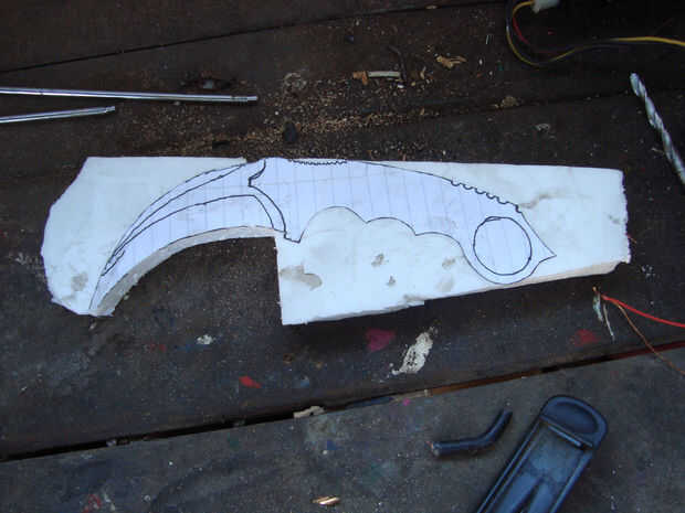 Originaria de Indonesia, el karambit es un cuchillo de mano cuyo diseño se dice que es insired por uña de gato. El karambit características en el juego de computadora popular Counter Strike. Hice este cuchillo karambit de cosplay para #1Son. La lámin