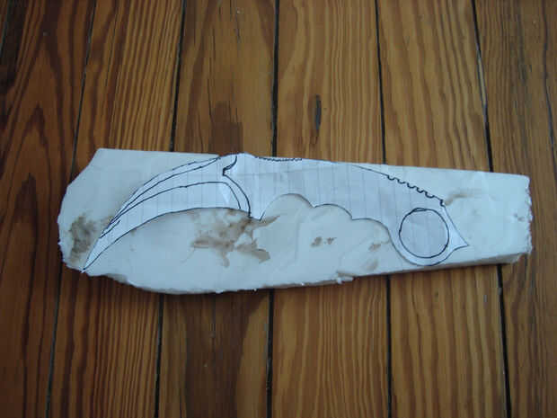 Este es el tutorial sobre cómo hacer su propio cuchillo de madera, o en este caso karambit.Paso 1: Obtener una plantilla e imprimirlaPaso 2: corte Cortar y pegar la plantilla a las piezas de madera y cortadas madera y pegamento.Paso 3: pintura Estoy
