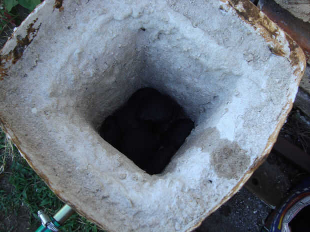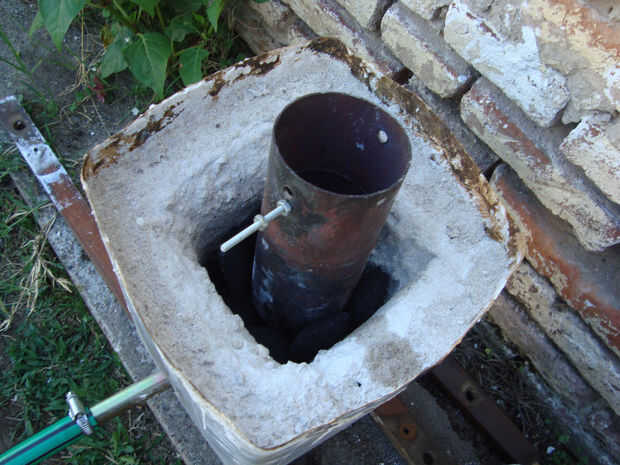 Luego encendí mi horno de fundición, y fundi algunos pedazos de aluminio. Y luego vertí el aluminio líquido sobre el molde se encuentra en la arena.
