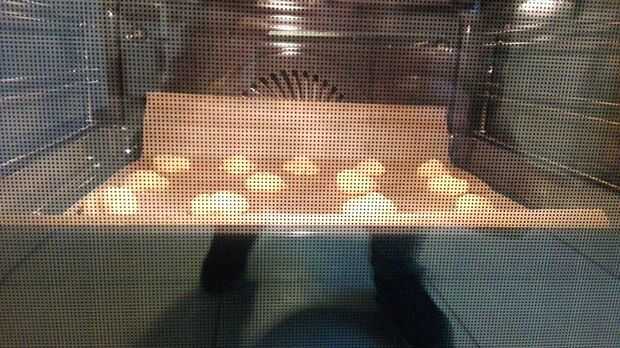 De koekjes moeten 12 à 17 minuten en de horno zitten, bak tot de randjes goudbruin zijn. Cuando de koekjes klaar zijn pierna je ze op een gallo om af te koelen en prik je da tandenstokers erin.