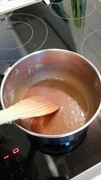 Paso 6: Doe de karamellekes, agua 2 eetlepels appelsap en het het sauspannetje