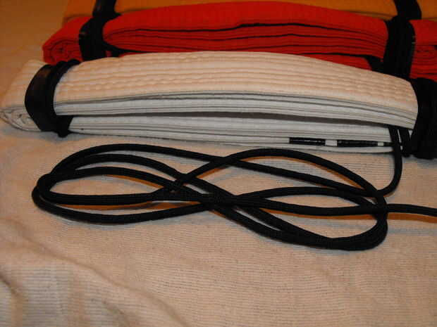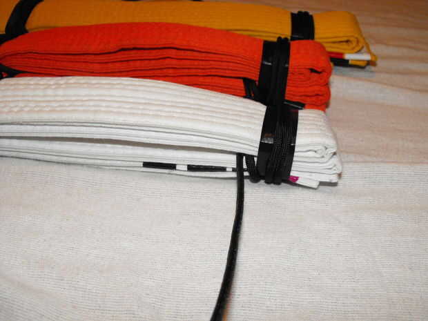 Al llegar al final, todo el exceso de cable se colgando fuera de la parte inferior de la correa primera. Hizo una pequeña armadura de mina y guardados en los pliegues de la primera cinta y había asegurado con otra banda de la cinta en el centro de la primera cinta.