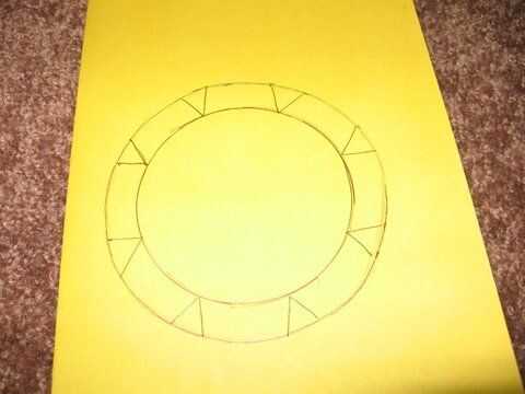3. utilizando la ilustración como guía, marque las muescas entre los círculos interiores y exteriores. (Las muescas más marca, la más redonda será su cabeza de tambor).