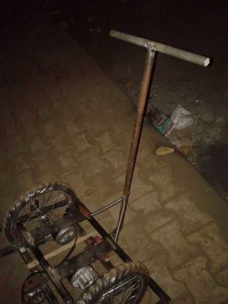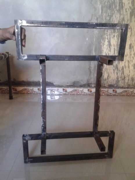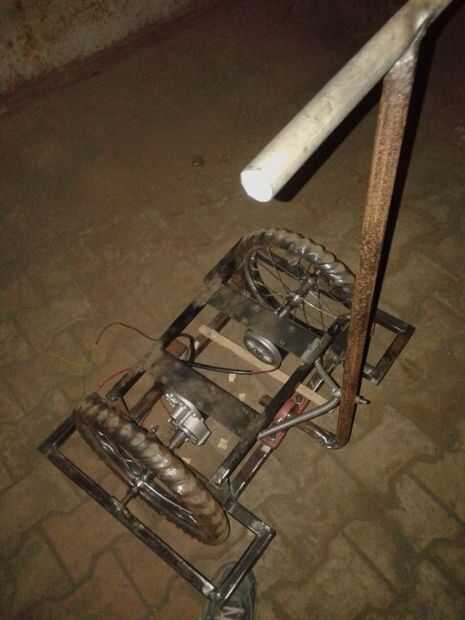 La estructura de segway se hace como simples como sea posible. Ha sido diseñado teniendo en cuenta que tiene que soportar el peso de los motores, baterías y el mayor peso del jinete. Hemos utilizado varillas de ms de la Chatarreria con área de sección X 16 cm. Son tubos cuadrados huecos teniendo menos peso y alta resistencia por lo tanto más adecuado para este propósito. Anteriormente nuestra elección fue la madera para hacer el marco, pues podría crear problemas en el entorno acuoso en temporada de lluvias que cambiaron nuestra forma de usar la Sra. también era fácil de soldar con autógena en lugar de elaboración de la madera. La figura muestra la estructura en cad. La original es no exactamente similar a causa de algunos pequeños ajustes, pero la estructura general es bastante similar. Hay una rueda de apoyo adicional en la parte posterior para soporte adicional.