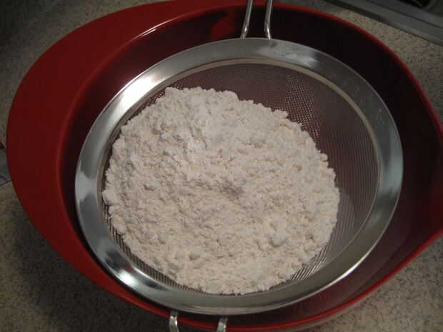 -Tamice la harina de pastel en un tazón y resérvelos.