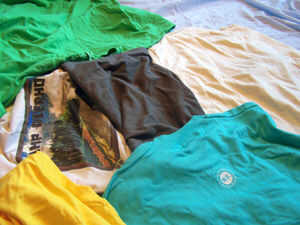 Sabía que si el panel acabado debe ser 9 "x 18", entonces yo tendría que añadir a tela extra para las costuras. Así planeó para que cada panel 9 "x 18", pero ha añadido extra de 5/8" en los cuatro lados para darme espacio para las costuras. 5/8" es la asignación estándar para las costuras. Esto significa que cada camiseta me dan 2 paneles. Había elegido 4 camisetas tenía suficiente para hacer los 4 lados al cubo. Superior e inferior de los cubos, usé las mangas de la camiseta y otros materiales sobrantes para que el patchwork se vean.