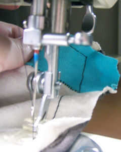 Cada una de las fotos a continuación mirar muy de cerca y verá que la progresión de los pasos. UPI se gire y continúe su costura, y se puede ver cómo haces un giro y sus líneas de costuras serán perpendiculares entre sí.
