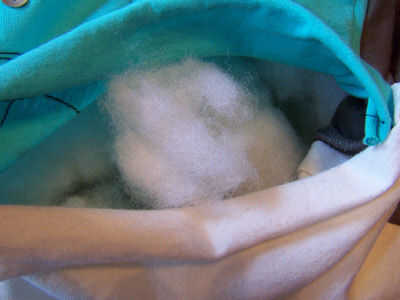 Ahora es el momento para llenar tu cubo y coser el borde final. He usado relleno de almohada a cosas la escultura de cubo de Memorial de Katrina. Tomó aproximadamente 6 bolsas grandes de relleno para llenar el cubo. Cuando haya terminado usted necesitará handstitch la abertura donde se rellena el cubo.