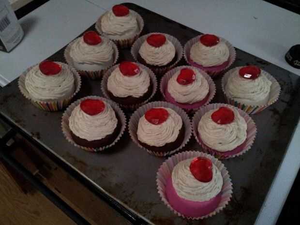 Después de que haya terminado, lleve dentro y darles a todos un trabajo de pintura buena. Hice 1/3 marrón (chocolate), 1/3 color de rosa (fresa) y 1/3 blanco (vainilla). Una vez seco, pegar en los trazadores de líneas de la Magdalena.