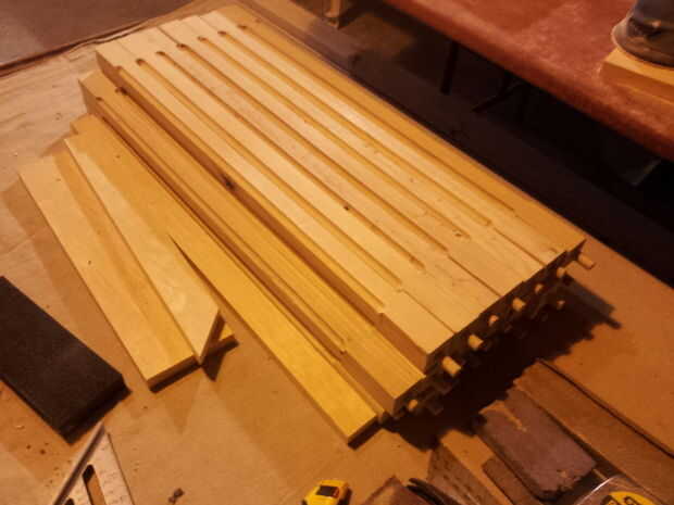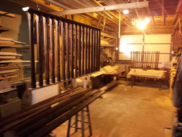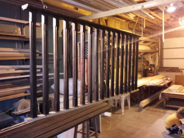 construí todos los pasamanos de kd (para ahorrar $) en mi garaje. Mancha poli entonces y trajo dentro instalado. Incluso post son caseras de desechos.