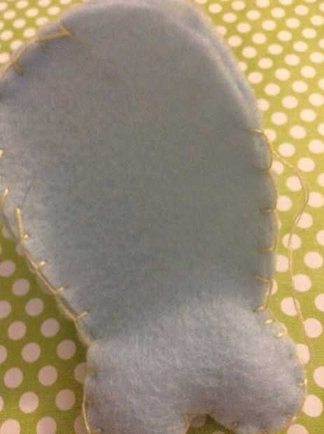 Hacer lo mismo que hiciste al otro lado. Tuve que cortar las aletas un poco más pequeño, porque sentía que eran demasiado grandes para el cuerpo pequeño. También, la cola de la materia muy bien y caben en tanto algodón como puedas