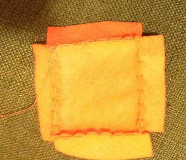 Cosa en los rectángulos a los bordes de la plaza con una puntada de manta.