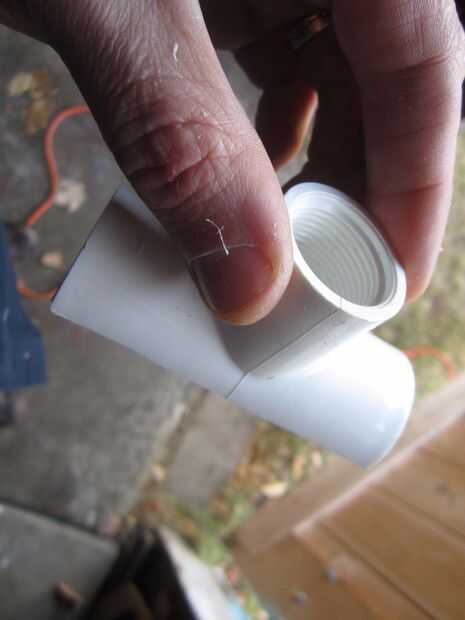 En la compra de Amazon, se observó que el mango era hueco. Mi plan era un tubo de PVC en su interior de cemento y colocar codos de 90 grados para el marco vertical. El interior de las asas son solo un smidge más estrecha de la tubería de PVC de 3/4". Encontré otra pipa que era un poco más estrecha, pero cuando os adjunto los codos interfirieron con las armas que funcionan el mecanismo de succión. El marco iba a tener que fijar en el exterior de la manija.
