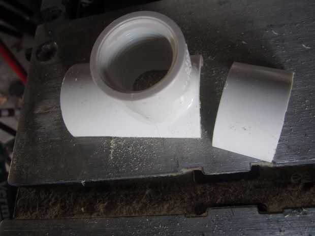 Con el fin de crear una plataforma que emparejar, cortar 1" PVC tes a lo largo. He utilizado una sierra de mesa, con cuidado. 1" arco coincide con el mango de las tazas de la succión doble lo suficientemente bien.