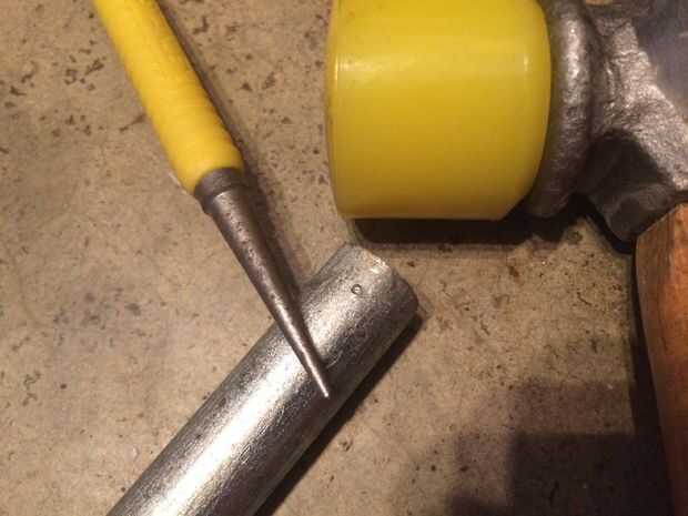 Utilizar un conjunto de clavos para hacer un pequeño agujero para comenzar el pedacito de taladro.