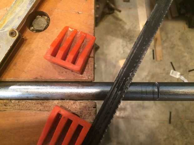 Corte el eje longitud con sierra para metales, mina fue 31" de largo.