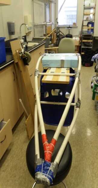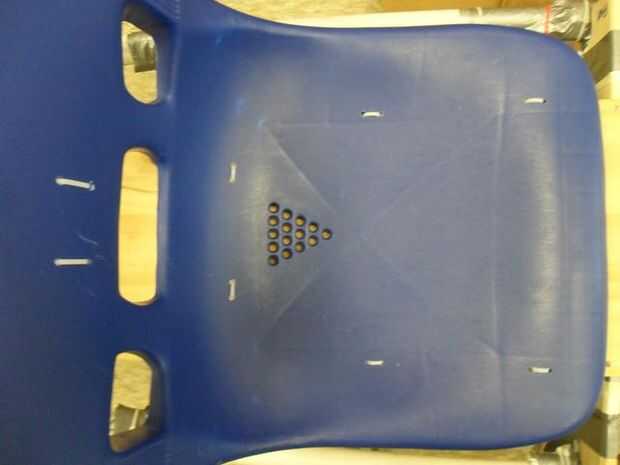 En primer lugar, tomar un tablón de madera y perforar varios agujeros, luego amarra lo en el fondo de apoyo a Marcos. Haga algunos agujeros en la silla y la tabla, luego use el lazo del cierre relámpago para asegurar la silla en su lugar.