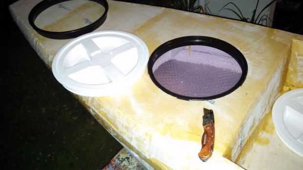 Por recortar el borde exterior de la presión en el anillo, retirar la junta tórica y luego recorte el borde al ras con la parte inferior de la ranura, hice las tapas del cubo en las escotillas de cubierta.