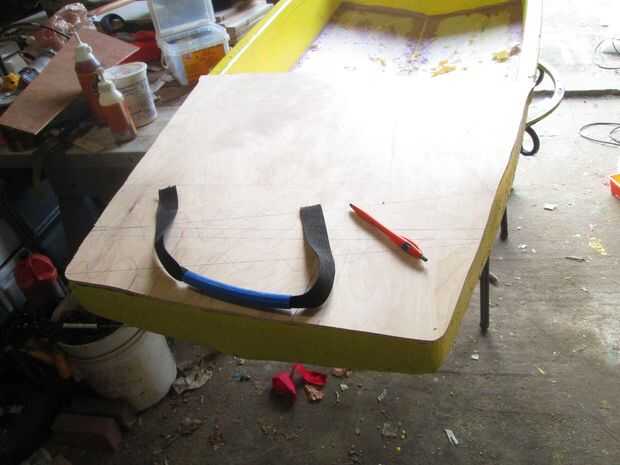 Traté de cubiertas de madera contrachapada, pero demostraron para ser pesado. Volví a cubiertas de espuma, he añadido bloques triangulares de espuma, pegados a los costados con el extremo ancho del triángulo hasta el soporte de la cubierta, luego pegan las cubiertas en con GS. He añadido mi barco simple asas en cada extremo. Había derretido de una serie de agujeros en cada extremo de la correa, luego intercala los extremos interiores entre la parte inferior de la cubierta y una cubierta de espuma, bloque de apoyo. Las asas son lo suficientemente fuertes como para colgar el barco y proteger el barco en el techo del automóvil a velocidades de autopista. manijas de barco instructable