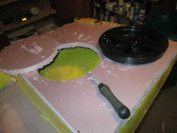 Utilizar el anillo para marcar la espuma, cortar la espuma a un círculo, luego del ajuste para asegurar un ajuste bastante exacto.
