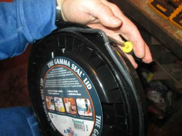 He añadido la gama sello escotillas de cubierta. La tapa de sello de la gama es una agua y el aire apretado, tornillo de tapa encontrada hechos por la compañía de sello de gama. Están diseñados para encajar en la parte superior de un cubo de 5 galones estándar, lo que es aire y agua firmemente con un fácil de quitar la tapa.