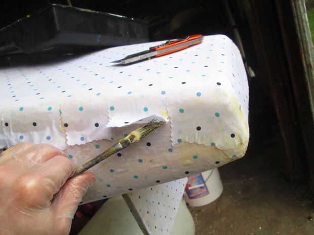 Ahora es el momento para pegar la piel de tela en. Este paso es donde su planificación anticipada será hacer o romper le. Asegúrese de que tener todos la tela cortada para la forma y asegurarse de que se presenta de una manera que te acuerdas de lo que sucede donde.