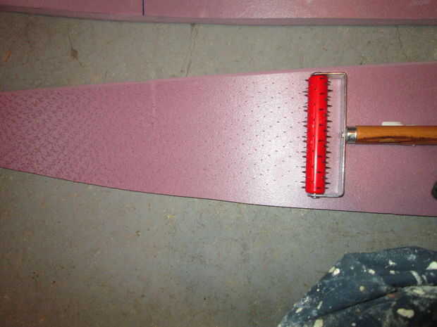 -tres hojas de 2'x 8' 1" XPS espuma, prefiero la espuma de Owens Corning rosa de Home Depot ya que es más suave y más fácil forma. La espuma verde en el de Lowe's es muy resistente, el azul parece tan suave como la rosa.