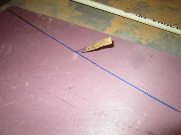 Si goof y hacer un panel de la forma incorrecta, la solución fácil es pegar el corte detrás junto con GG, a continuación, corte a la forma correcta. Guardar siempre las secciones de desechos hasta que el casco es 3D. Una vez que el barco está cubierto, forrado y pintado nadie debe ser capaz de ver la sección goofed.