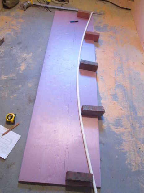 Utilizar una longitud de 10 pies de tubo de PVC de 3/4" con motivo de mis líneas curvas. Usar ladrillos para sostener la tubería en su lugar y luego trazar la forma.