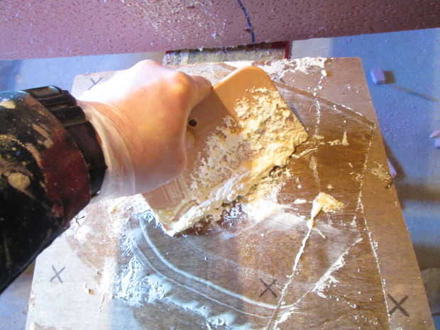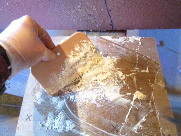 Una vez que todas las juntas estaban juntos volví y raspada hacia fuera cualquier pegamento exudado hacia fuera con el esparcidor de bondo, esto ahorra lijar después.
