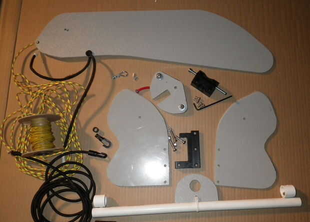 Materiales necesarios hoja de 2 pies x 3 pies aproximadamente de ~ 1/4" espesor ABS plástico o similar para hacer las placas del timón, yugo y secundarios, algunos bloques de madera o de plástico para hacer las bisagras, un tubo de plástico bastante rígido (yo usé 6 mm OD 4mm ID neumática la tubería), 2 pies del 1/4" choque cable de y algunos no estiramiento cable o kevlar cometa cadena (yo usé McMasterCarr 8912T314 vinilo cubierta cable de acero - acero inoxidable Flexible 7 X 7, 1/16" de diámetro, de amarillo, de longitud 25 pies $8). Sujetadores y accesorios para su yak (cuatro tornillos 10-32 mínimos para pernos en la parte posterior del Kayak de mar). Sugiero la lectura a través de este instructable y adaptando su diseño a utilizar, qué materiales y hardware tienes disponibles.