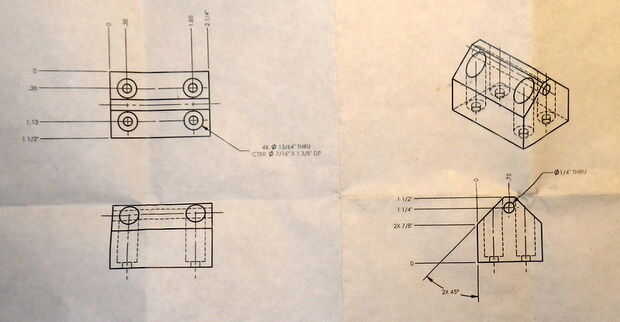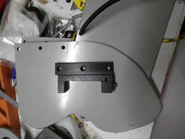 Estos dos componentes y el pin son la base del timón. Uno se monta en el yak permanentemente y el otro es Monte el conjunto del timón pivotante en. Los dibujos son lo que hice para el Prowler 13 de OK. La altura sobre el agua y agujero patrón se puede adaptar a sus yaks los agujeros y la forma de montaje. La anchura del montaje del timón tiene que coincidir con el espesor de su material de timón más un poco! Hice mis manzanas de plástico UHMWP pero éstos podrían ser madera y barnizadas. Marcar, perforar y la forma con qué herramientas tenemos disponibles. Una fresadora hace vida muy precisa y fácil, Sierra, taladro y archivos requiere más tiempo y atención. El orificio vertical a través de los dos bloques debe dimensionarse para adaptarse a un pasador largo que ha elegido. He utilizado un tornillo cabeza allen, níquel plateado y han perforado 2 agujeros en ella para un pin de subsistencia. El agujero perforó la voluntad moho en el mar así que planea reemplazar en un futuro cercano con un pasador y el pasador del enganche.