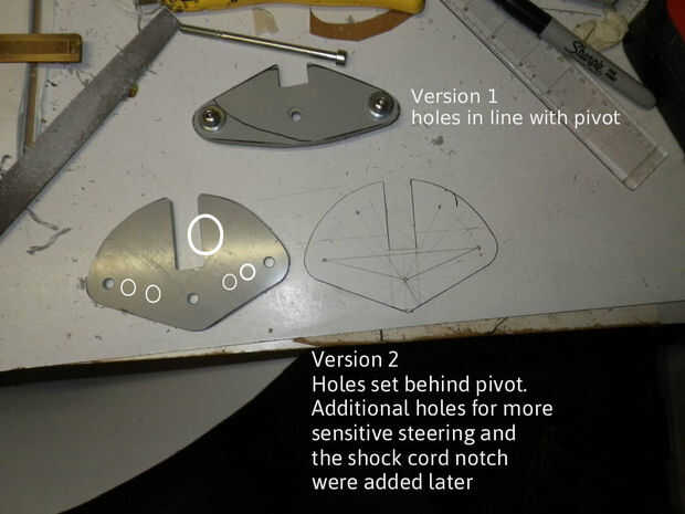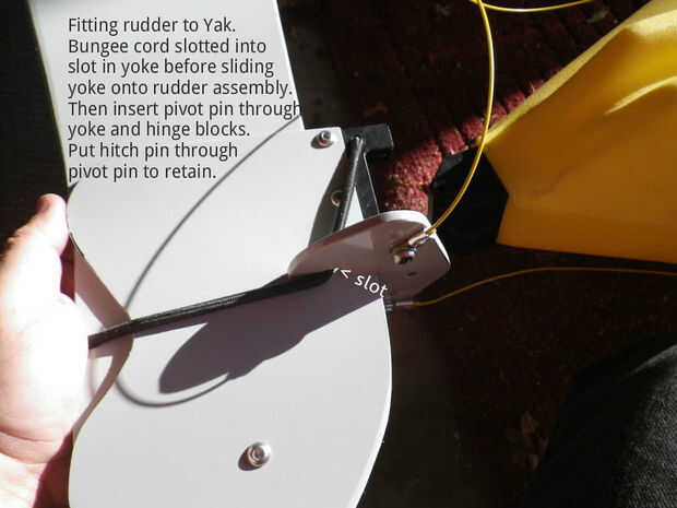 Los diagramas proporcionados son las dimensiones que utiliza. Es posible que pueda mejorar el diseño y aspecto y usted puede hacer el timón, la profundidad y la forma que desee. El único requisito es que el Levante y el cordón inferior debe colocarse dentro del ancho del timón y claro la bisagra como se gira. Hacer plantillas de cartón y la maqueta en yak antes de transferir a la hoja ABS y cortando. Taladrar los orificios primero le permite a las placas laterales del perno juntos cuando corte y acabado del perfil como un par. El agujero perforado en el yugo que un ajuste cercano a su pasador de la bisagra y la ranura abierta para el grueso de su timón y dos placas laterales. Un rompecabezas hace la vida fácil y luego terminar el perfil con un archivo y por último después de que ha sido equipado y ser probado puede desmontar y radio de borde de ataque y forma cónica del borde posterior de la lámina del timón y la rotura de las esquinas agudas donde el choque de la cuerda roza. Taladre el agujero en el borde del timón para que el cable inferior de subida y enrosque el cable en un nudo. El nudo debe quedar dentro del ancho del timón. Usé 550 paracord y derritió el extremo para ajustarse. Perno de la Asamblea hasta el bloque de la bisagra. Asegúrese de que los pivotes del timón libremente entre las mejillas laterales. Usando las tuercas marca ' nyloc ' le permite ajustar la presión de sujeción en el pivote. Puede que necesite presentar una ventaja en el interior de los patés de la mejilla donde el nudo se introduce entre ellos si el nudo es un poco más ancho que su timón. Monte el conjunto del timón al bloque bisagra montado sobre el yak retirando y reinsertando el pasador de la bisagra.