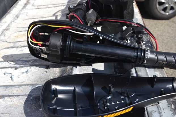 Con cuidado jale aparte usted cabeza de Minn Kota observando cómo todos los bits deben encajar de nuevo juntos.