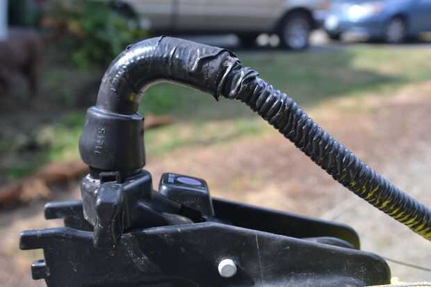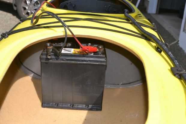 En la fibra de vidrio por un post que conecta con el motor de trolling, tendrá longitud de acceso que se pegue encima del kayak. Si quieres tener una línea de corriente mira a su kayak, puede cortar el tubo de fibra de vidrio a mano, teniendo cuidado de no cortar los cables!