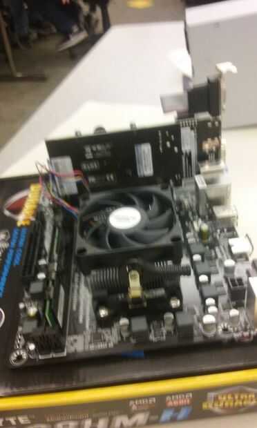Ahora necesita poner alguna pasta térmica en la CPU, luego baje lentamente el ventilador de la CPU sobre la pasta térmica. Una vez en el CPU, engatillar el ventilador para que no se mueva.