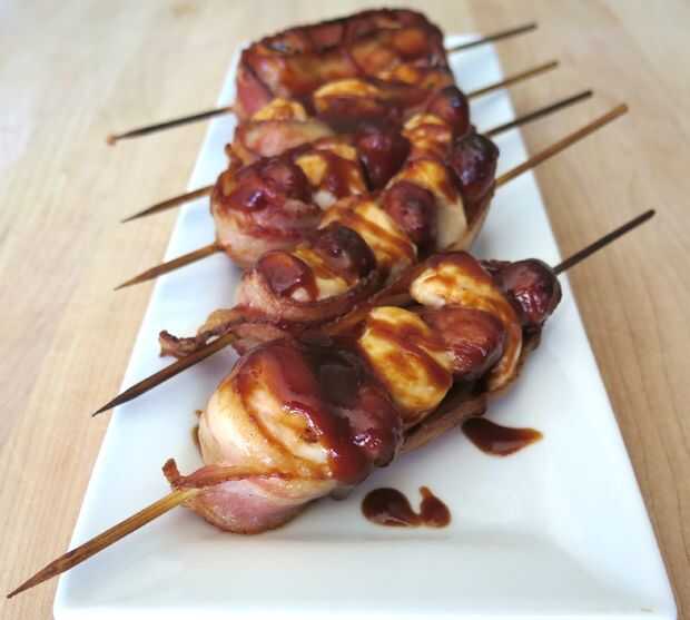 Lo único que hace carne mejor es más carne y salsa barbacoa! Estos pinchos de carne se componen de pollo, lil smokies, tocino y luego se adoba en salsa BBQ. Ideal para cualquier ocasión de reunión o especial, incluyendo el SUPER BOWL!
