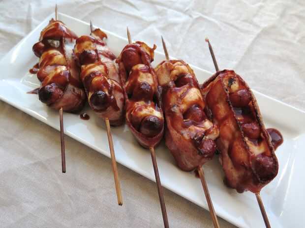 Kebab de carne con Lil Smokies, pollo y tocino (4 / 5 paso)