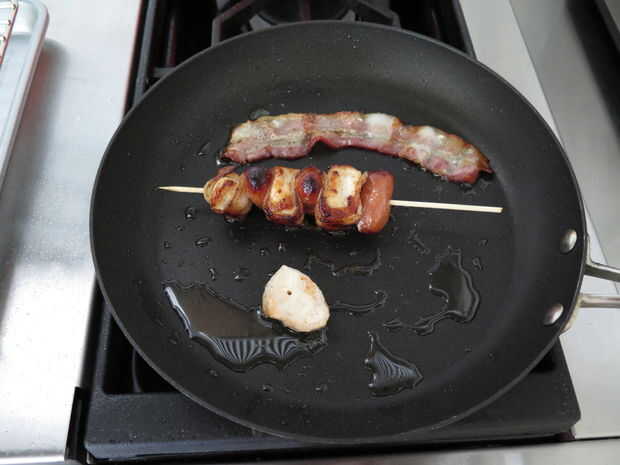 Así tuvo muchos intentos porque simplemente no sabía lo que estaba haciendo. Fue difícil conseguir el pollo y el tocino cocido correctamente.