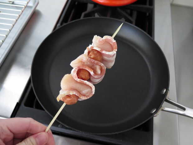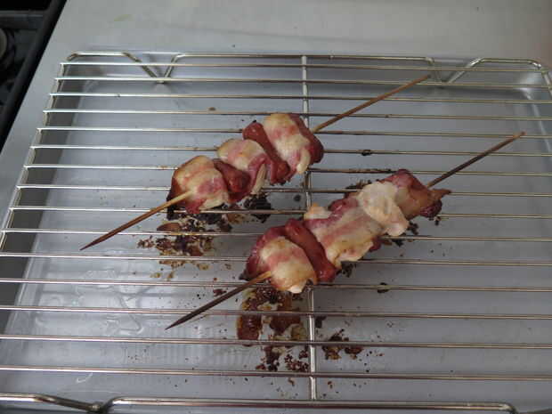 Inicialmente, quería abrigo alternativo el tocino alrededor del pollo y smokies como usted puede ver en la primera imagen. He intentado hornear, asar a la parrilla y freírlo. Cada vez, algo no cocine completamente. Entonces tengo una sugerencia para enrollar el tocino alrededor del exterior, y este hizo el truco!