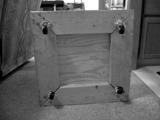 Utilicé 2 "x 4" ruedas de Home Depot, no planeo poner mucho peso en él pero las ruedas de apoyo algo así como 120 libras Asegúrese de que tener ruedas que se llevará a cabo lo que planea poner en ellos. Las ruedas fueron Unidas con pernos a la 4 "x 2".