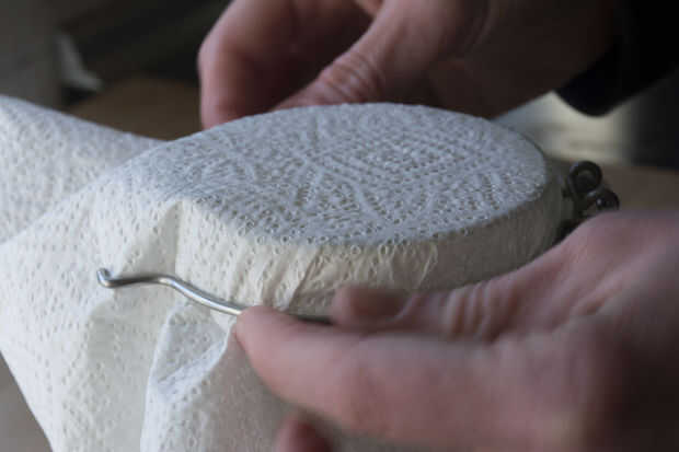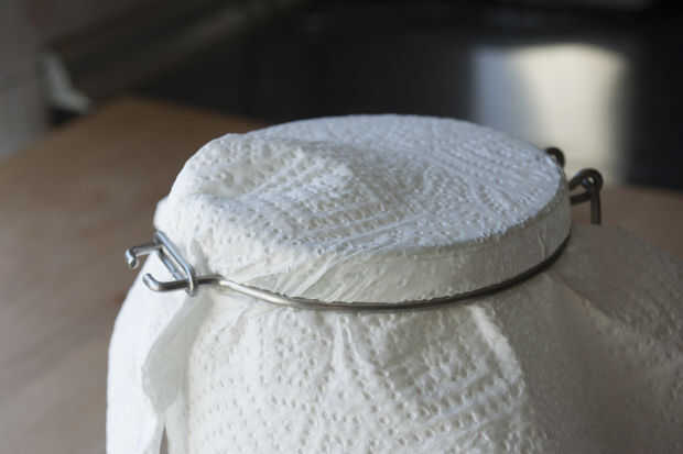 - Tome el paño o toalla de papel y cubrir la jarra.