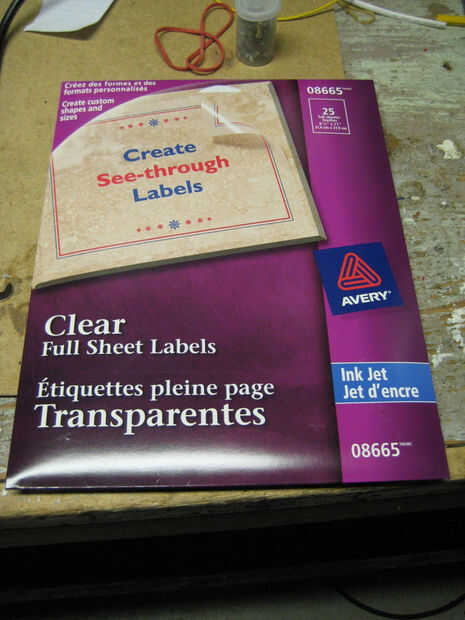 Ésta era probablemente la pieza más cara del lote. Era algo así como $30 para el paquete de 25 que ha recogido de las grapas. Si usted mira alrededor podrían ser capaces de encontrar algo por menos. Tenga en cuenta que con este 25 pack te sólo terminará usando como 3 hojas como máximo. Estas etiquetas son más translúcidos que "claro" ya que tienen una capa de polvo permite que la tinta se adhiere a la superficie de la hoja. Si desea borrar completamente o película transparente tienes que usar el equivalente de la impresora láser de estas etiquetas. (Avery Label #08665).